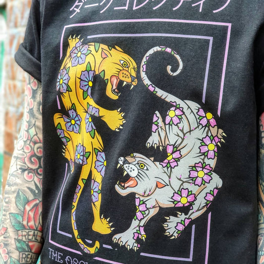 Floral Felidae Unisex Black T-shirt
