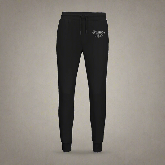 Webbed Embroidered Unisex Black Cuffed Joggers
